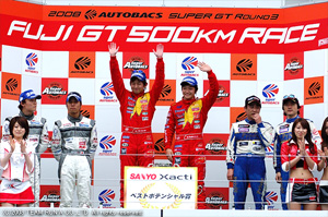 ペナルティーを受けた77号車は約2秒程前でレースに復帰するが77号車はあと1回ピットインが残っているため、ペースを乱すことなく余裕の走りで周回を重ねる国本選手。 その後、77号車がピットインすると、国本選手は2位以下を20秒以上引き離しトップを独走!そのままチェッカーを受け、見事なポールトゥウィンで第3戦富士500kmレースを制した。 更に国本選手(19歳4ヶ月)はSUPER GT最年少優勝記録を塗り替えた。