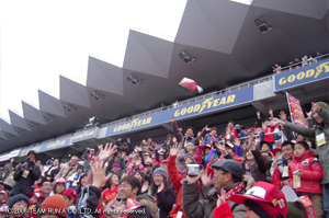 みんなと一緒に記念撮影! 応援席は赤一色になりました。 みんな応援ありがとう!